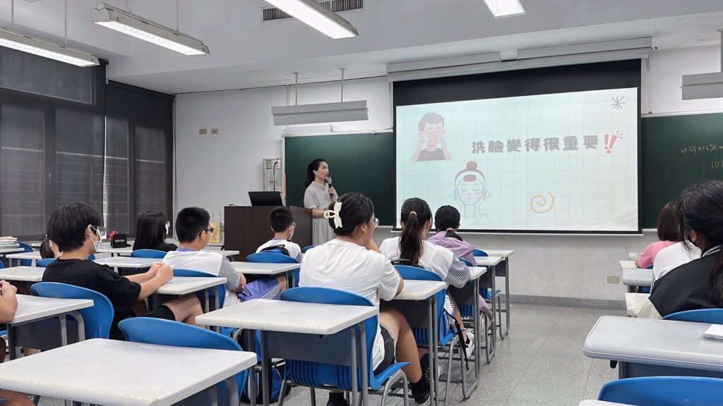 許多偏鄉孩子從未接觸過正確的洗臉與保養方法。宏觀團隊透過簡單易懂的課程,教導孩子們皮膚生理學、清潔與保養的重要性,並安排實際體驗:孩子們親手使用公司的潔膚霜、化妝水與乳液,感受「洗對臉」帶來的清爽與舒適。課程結束時,每個孩子都獲得了一瓶潔膚霜,希望他們能將這份清潔好習慣帶回家,繼續守護自己的肌膚健康。